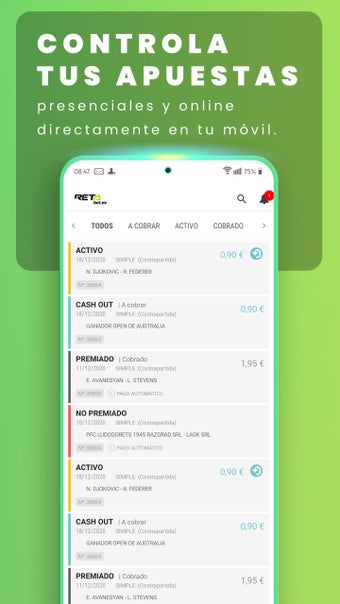 RETAbet Apuestas Deportivas Online requiere Android 9.0 y superior. La versión actual del software es la 2.2.19, y sólo se puede conseguir en español.